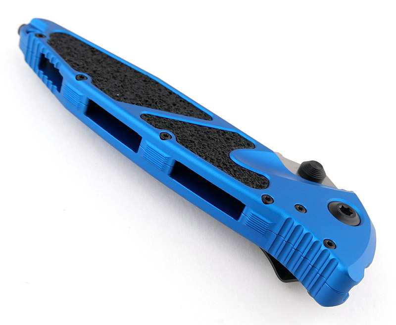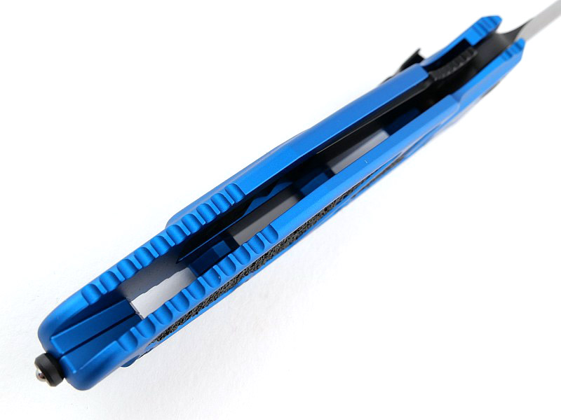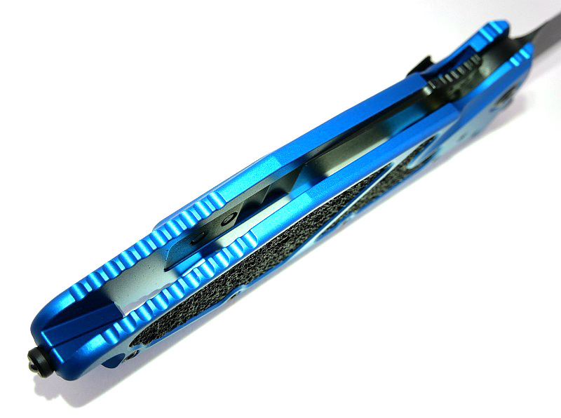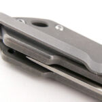 Thumb grip jimping has been included across the ‘H’, and you can also see the small clearance step cut around the pivot to ensure the blade rotates without contacting the liner. Looking inside the handle you can see the stop pin for the blade tang to rest on when folded.