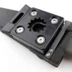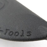 Snapping the Jaque’s blade initially out to the half-stop position, we get a good view of the wide Wharncliffe blade. With the blade open we can more clearly see the handle shaping with two finger grooves; first finger and third finger. It’s a powerful full-flat grind Wharncliffe blade with elegant swedge sweeping down to the point, which also has an inconspicuously incorporated nail nick. MKM’s logo sits above the engraving of the steel type; Magnacut. Though not strictly a sharpening choil, the heel of the cutting edge does stand proud of the tang, and just forward of the plunge line; this allows the entire cutting edge to be sharpened. On the opposite side of the blade, the designer’s (Jesper Voxnaes) logo is engraved and onto more views of the blade.