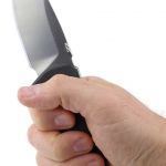 Thanks to its one piece sculpted handle and back-lock, the grip is excellent for a folder. A fully integral finger guard makes the grip super stable and more than a match for that powerful blade.