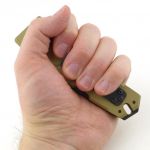 Ergonomics are good and functional even with the angular look. Thumb-stud opening is firm but not stiff. If anything is over stiff, it is the back-lock spring. Unlocking the blade is quite tough, and I need to change grip specifically to one where I can apply maximum force to the lock – I can’t see this ever releasing accidentally due to a firm grip.
