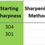 Degradation after strop – has the edge been permanently damaged/chipped or can it be recovered with stropping? A negative number means it actually improved from the starting figure, suggesting there may have already been some rolling of the edge before testing. (Averages also shown for A and B)