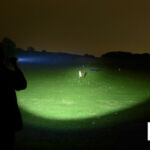 With the larger head, and larger reflector, the H5 does have the edge in overall output, and it focuses the beam more for a longer reach. This gallery shows some longer distant photos on a golf course driving range. The H3 and H5 beams compared directly. The focus of the H5 is clearly visible at these longer ranges.