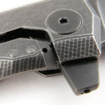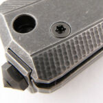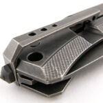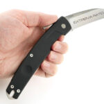 Here I’m showing it in an un-gloved hand (a hand which takes XL size gloves). It is compact, and doesn’t fill my hand, but the finger groove provides a really secure grip with the jimping (especially the thumb jimping) giving confidence.