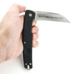 The Extrema Ratio Satre is a pocket-sized, light and extremely tough fixed blade knife, designed in collaboration with Daniele Dal Canto, a Master Advanced F.I.S.S.S. instructor. In this special report review of the Extrema Ratio Satre, I am able to carry out a special set of tests to quantify the edge apex stability (resistance to rolling) in a direct comparison of the two steels the Satre is available in, N690 and S600, as I have all three versions of the Satre available to test, the standard Black and Satin (N690) and the S600 version at an super hard 64 HRC. This special report also include two videos, an overview and detailed measurement, plus one showing the steps of the edge stability testing (SET – Structural Edge Testing).