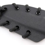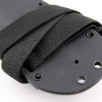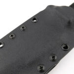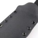 The small and neat Kydex sheath arrives with a neck lanyard, nicely laced through the eye rivets that hold the Kydex halves together. These eye rivets allow for other mounts to be fitted such as the ULTICLIP. The sliding adjustment toggle also serves as a safety break-away. There is a drainage hole at the blade tip on one side.