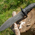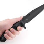 The Satre knife consists of a single piece of steel with no other material attached to it (ignoring the small cord lanyard). Despite that simple construction, Extrema Ratio have managed to pack it full of character and clearly identify it as one of their designs. The distinctive first finger grip is shaped into the tang along with the small cut out for weight reduction. Plenty of jimping is provided for various grips.