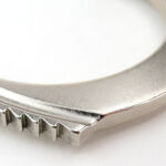 The 852 takes the power and control of the rigid handcuff and adds a locking hinge to allow then to be folded for easier carry. As the cuffs are opened, a wide latch engages on each side of the hinge. The centre of the hinge has another keyway for a standard TCH handcuff key to unlock the hinge and allow the 852 to fold.