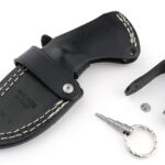 The H1’s standard leather sheath is packed full of features. Within the curved and flowing shaping of this sheath, it has a retaining strap secured with a press-stud, a ‘standard’ belt loop, along with two special loops that can be rotated and opened out to allow various belt or MOLLE carry configurations.