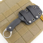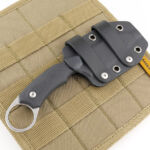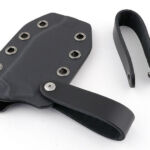 Giving you a more compact carry, the optional Kydex sheath has two special loops, like the leather sheath, that allow for various belt or MOLLE carry configurations, but without the fixed belt loop and retaining strap. The retaining strap is not needed due to the Kydex ‘clip in’ retention, so allowing for a much more streamlined sheath.