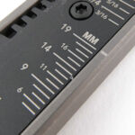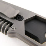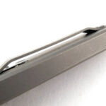 A reimagining of an old Swedish design, there is a sliding adjuster moved by a worm screw. BIGiDESIGN have added both a metric and imperial scale for setting the wrench ready to use. A low profile clip is fitted to the back and the EDC Wrench also includes a Ti bead on the lanyard. You can just see the slider retainer under the clip.