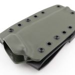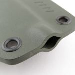 For the sheath I’ve split it into two parts, with this one focusing on the main body of the sheath. It is a Kydex sheath held together with hollow eye rivets. This is the Olive colour sheath, but several other colours are available.