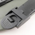 Although the sheath design allows you to fit any other system you want to, the M311 Spelter sheath comes with 75mm 2M MOLLE systems straps bolted onto the sheath. The end of the strap fits through a loop and over a small tab to hold it in place.