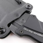Even with quite a bit of use, the Kydex retention is still on the stiff side. For anyone intending to mount it handle down on a chest plate or other upside-down position, this is critical. I certainly would have no doubt the knife will not come out under its own weight even with a very active user, and will still need a firm thumb lever to unsheathe it.