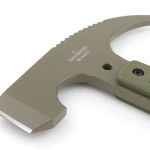 Multi-function design make the MFE-01 ideally suited for prying, digging, chopping, hammering, cutting, smashing rock, defeating locks, smashing windows, breaking and raking windscreens and as a climbing aid. The entire tool is overbuilt for outstanding longevity and is made from 8mm Bohler K110 (D2) tool steel and G10.