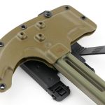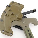The MFE-01’s sheath has a lot to look at. First in the gallery is a closer view of the belt holder. The Rhino tool is quite a weight to have on your belt, so I’ve not opted to adopt this myself, but it is a strong and serious option if you want to carry it on a belt. Of course you might also have a pack where this it the best way to attach it so it might not be used for a belt anyway. It is a ‘DOTS’ belt holder with belt width setting, lock, release button, and can be mounted horizontally or vertically.