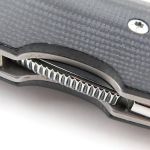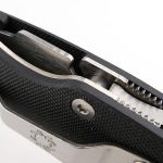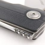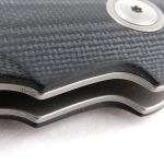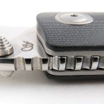 Lurking in the head of the EDC29 are dual NiteLab UHi 20 MAX LEDs – TWO monster 9 core LEDs! All along the EDC29, the carbon fibre composite frame is visible through cut-outs in the stainless shell.