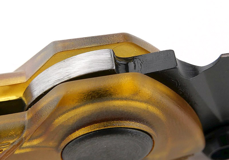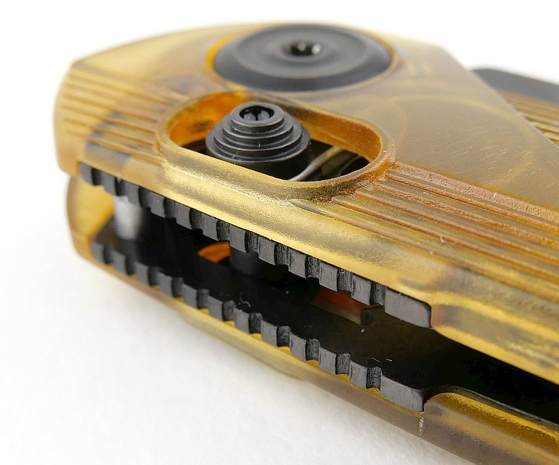 The action, out of the box, is silky smooth, with the blade tang running on phosphor-bronze washers; always my preference for stability, maximum strength, reliability and ease of maintenance. All through the testing there was not a hint of any change in the action, nor would I expect it.