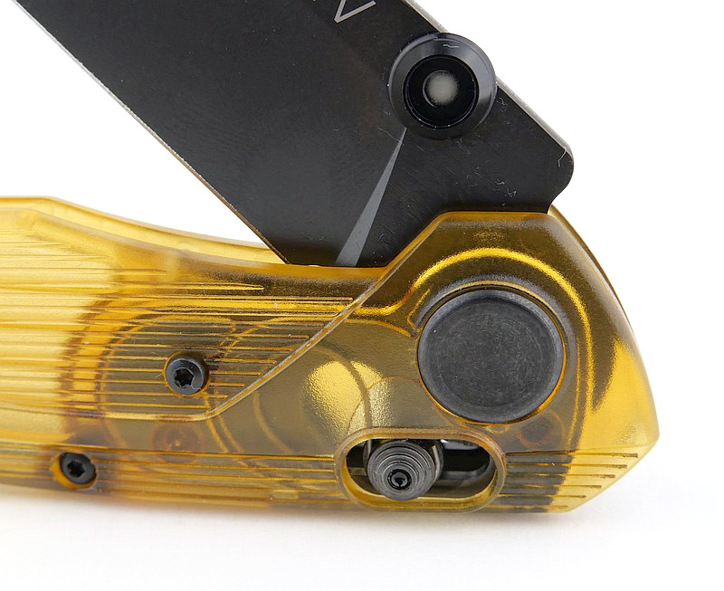 With the extended thumb ramp naturally bringing your grip up onto the blade, and making it easy to apply pressure behind the cutting edge exactly where it give maximum power to the cut. This also lifts the thumb studs slightly, making them both more accessible when the knife is folded, and further away from the cutting edge and any interference when sharpening.