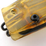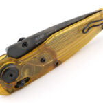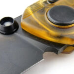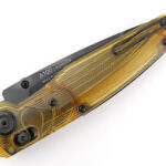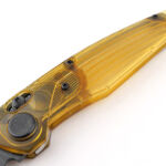 Swinging out the distinctive ANV blade allows us to further appreciate the clear natural Ultem handles by watching the lock mechanism’s function, and with the dark blade out of the handle the Ultem really lights up.