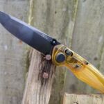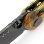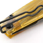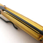And now onto a large gallery looking round the knife in the folded state. At first glance the apparent colour choice may seem unusual with its yellowy-orange colour, but remember this is a feature of Ultem in its Natural, or uncoloured, state. The A100 has other handle choices including dyed Ultem and a range of colours in GRN (depending on availability). The fact it is Ultem is to be celebrated.