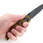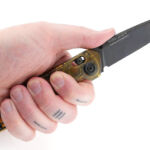 Yes, it is slim in the hand, but this slim profile makes it so easy to carry. Combined with the deep carry pocket clip it virtually disappears and you are not aware it is there (which can give you the occasional ‘oh, no, have I lost my knife?!’ stress). Tip-up is my preferred clip position, and although this is considered more hazardous, remember the A100 uses an A-Lock (which I would identify as an Axis-Lock) so the lock spring also positively keeps the blade closed. With this positive spring pressure it massively reduces the likelihood of an unwanted pocket-open. It isn’t something I would be concerned about with this knife, so the layout works perfectly for me.