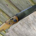 Moving onto carving and shaving cuts, the A100’s blade really bites in and cuts aggressively but smoothly. The slim handle does feel harder work in heavy cuts; of course it would. The A100 doesn’t shy away from the hard work though, and has done its stint as my beater knife with whatever thrown at it. The DLC has taken everything in its stride and knowing Sleipner is only a semi-stainless, it has surprised me that the edge bevel is not showing any corrosion despite being left well covered in ‘garden goop’, various plant/tree sap, and whatever else was on what I was cutting.