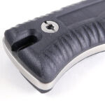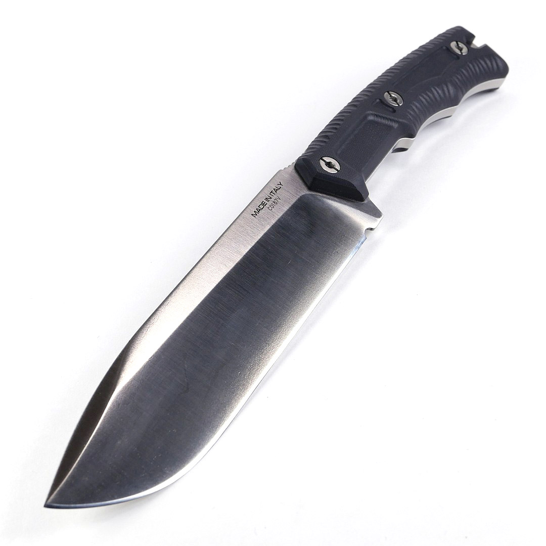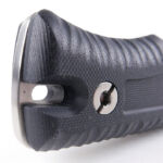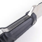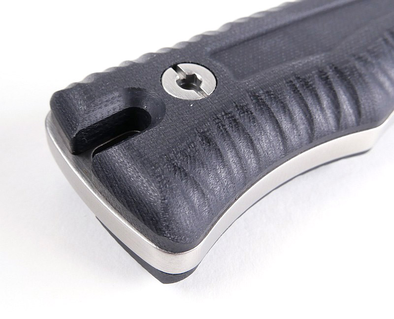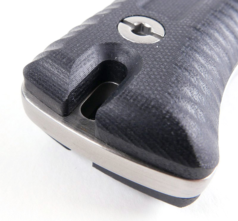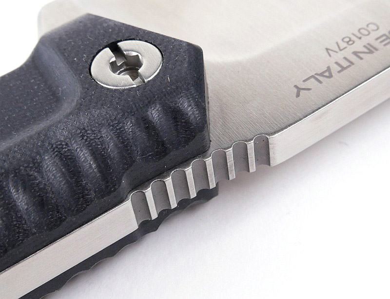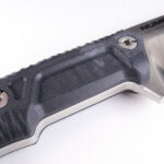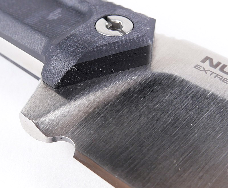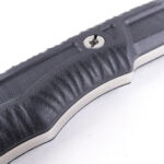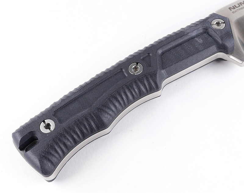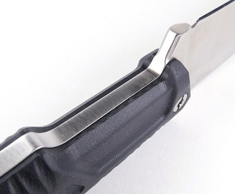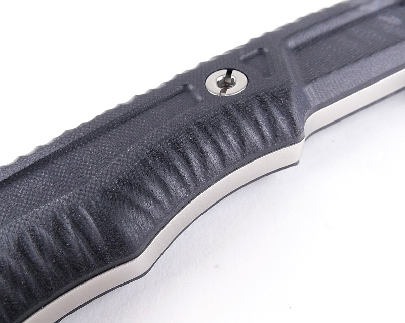 G10 handles with complex shaping that includes the distinctive Extrema Ratio first and second finger grip groove, are precisely finished and fit perfectly to the blade tang. Texturing all along the handle edges enhances grip wherever you position your hand. For the fully choked up grip there is also a section of thumb jimping on the spine for stability.