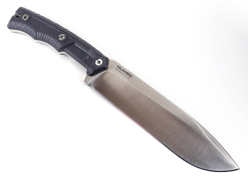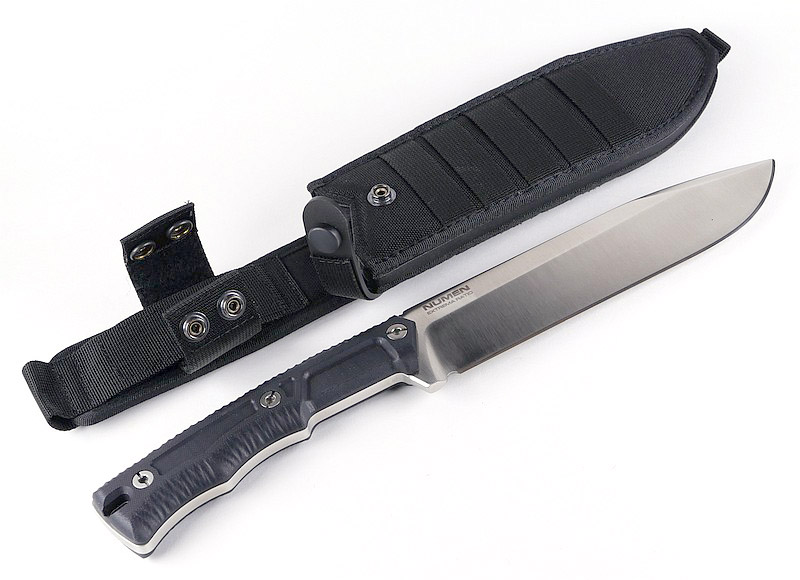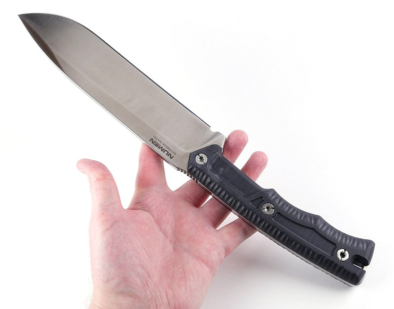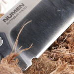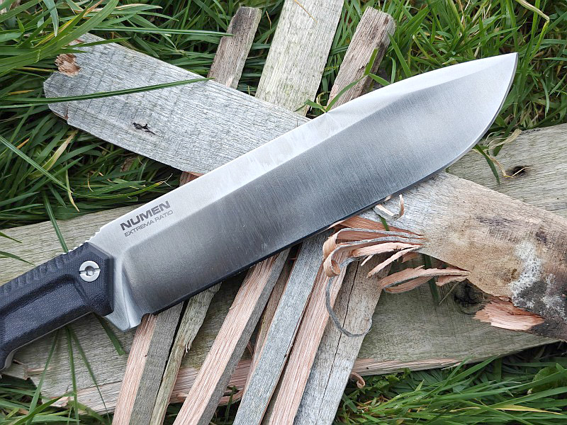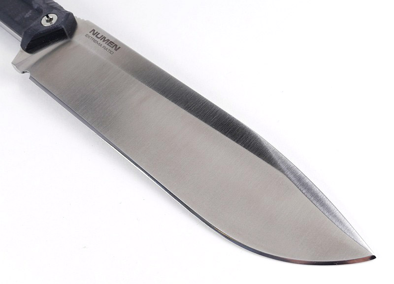 The version featured in this review is Numen Satin – made of Böhler N690 (58 HRC) steel for reliability and corrosion resistance. Also available in an S600 steel version (64 HRC) that has greater wear resistance and toughness.