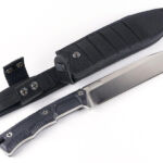 Numen’s blade is made to take seriously heavy use. Thick blade stock and a tapering flat grind sweeping towards a strong tip. The plunge line is well radiused to reduce stress concentrators, and a sharpening choil allows for full length edge sharpening with the choil being large enough to also not focus stresses.